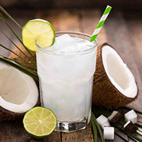 Das Ganze in eine Kokosnuss oder Longdrinkglas gießen.